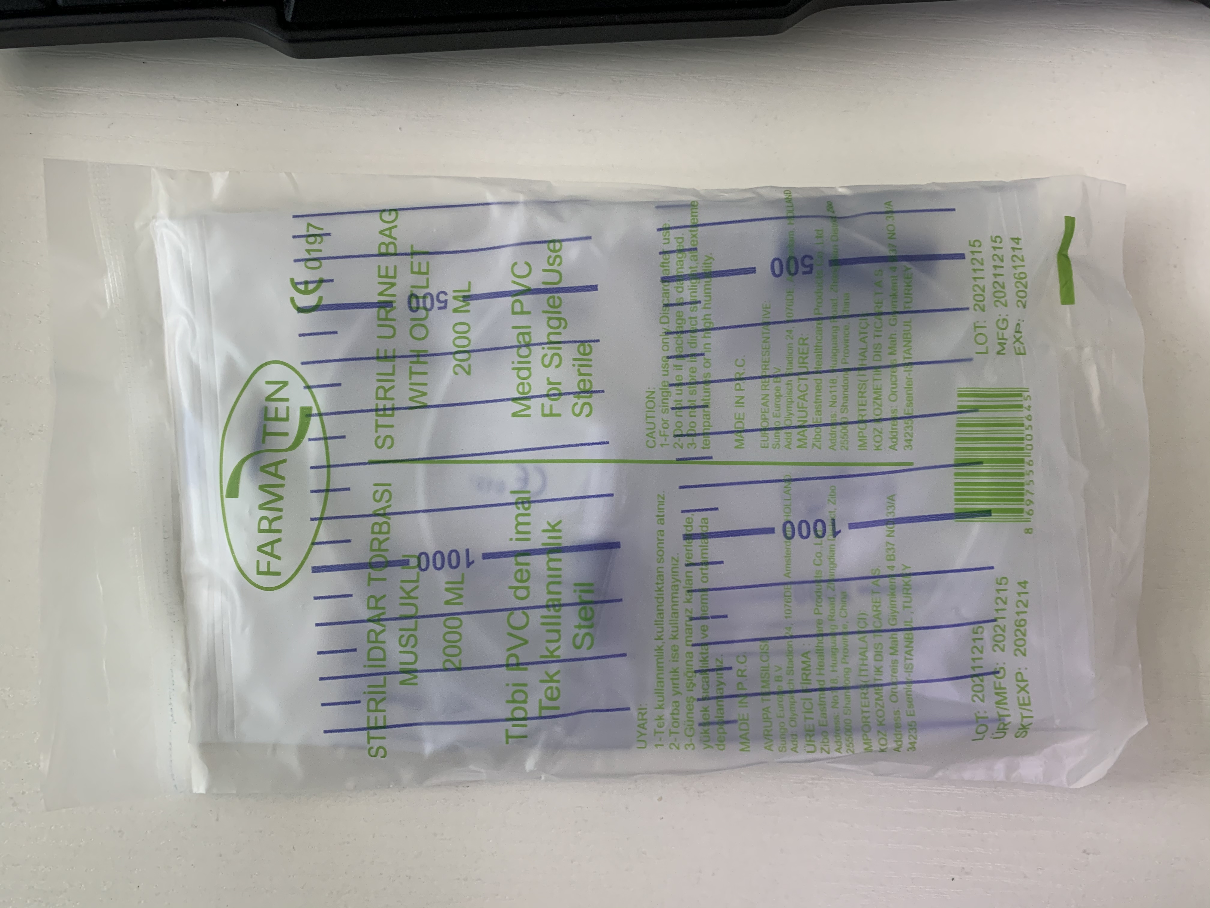 FARMATEN İDRAR TORBASI MUSLUKLU 2000 ML.
